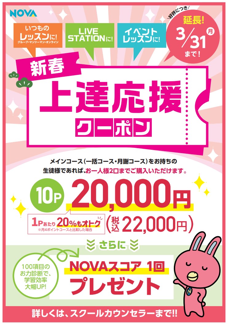1月よりリリースしております上達応援クーポンですが、