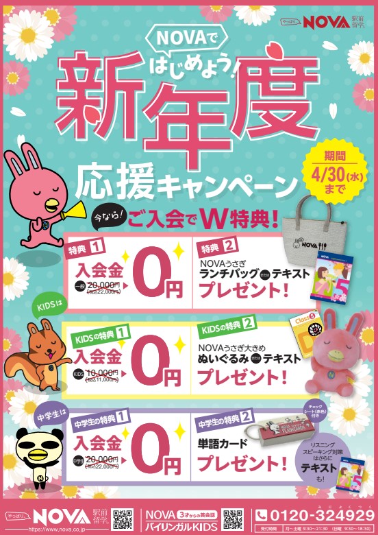 NOVAうさぎぬいぐるみ(大きめ)orテキスト1冊プレゼント!