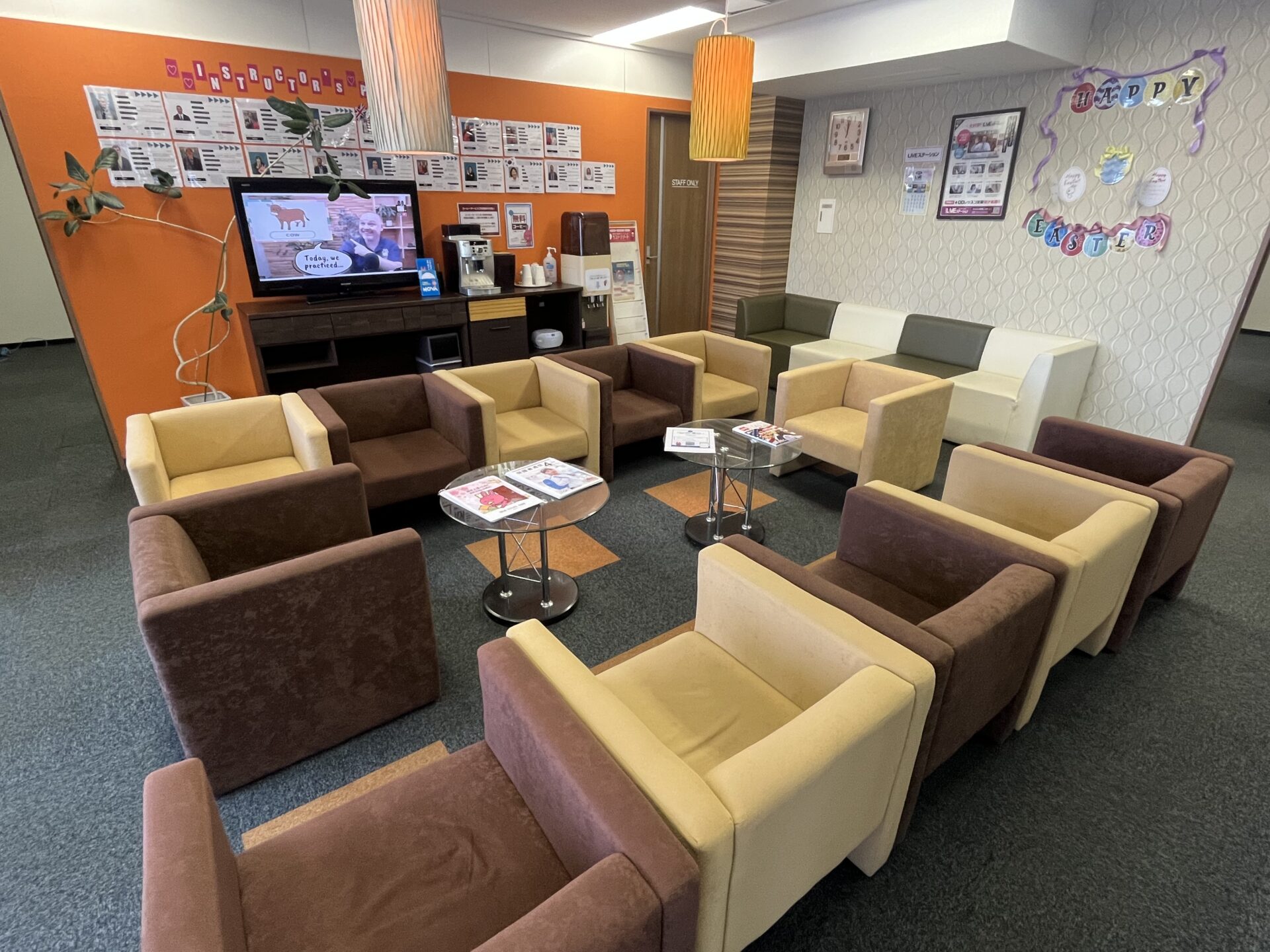 校舎が広い為、ラウンジが広くゆったりと授業までの時間をお過ごしいただけます!