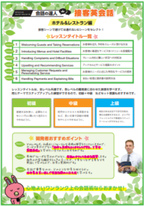 ホテル・レストランなどの接客シーンをトピックに丁寧な表現やTPOに合わせたコミュニケーション力を伸ばしていただけるレッスンです!