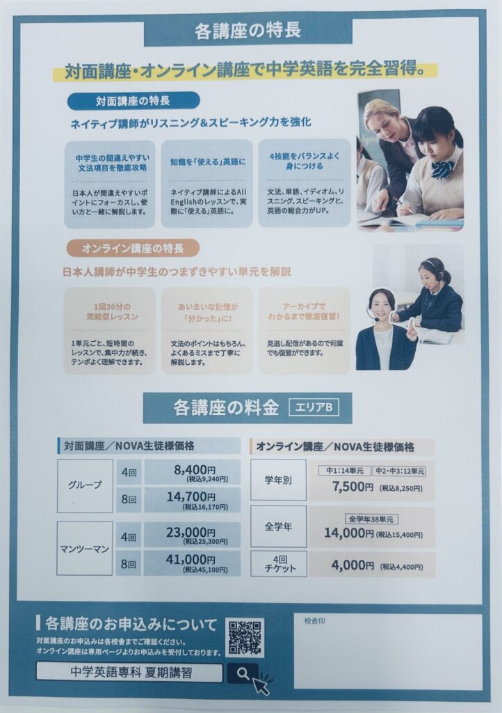 今年の夏休みはNOVAの集中講義で英語強化を実現!!✨🌈