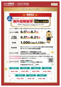 賞品は、海外短期留学、または 1 年間のレッスン特待生