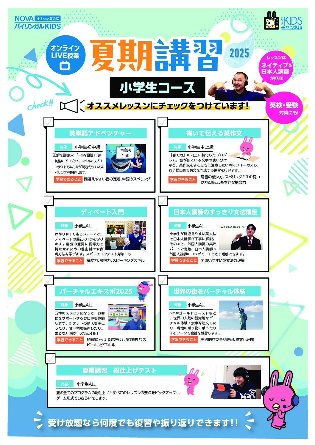 英会話スクール・英会話教室🌞🌻NOVAバイリンガルKIDS夏期講習2025🌻🌞