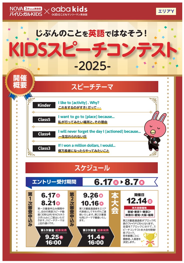 スピーチコンテストは全国のNOVAkidsを対象に決められたテーマでスピーチを競うイベントです!!🏆
