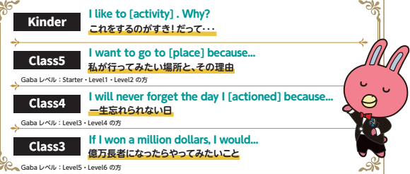 例えば、Kinderコースのテーマは、「好きなこと」について、