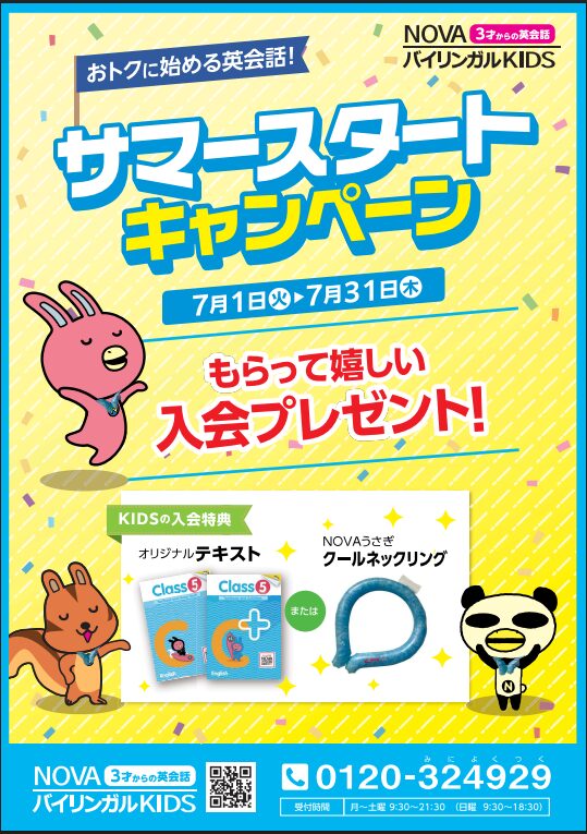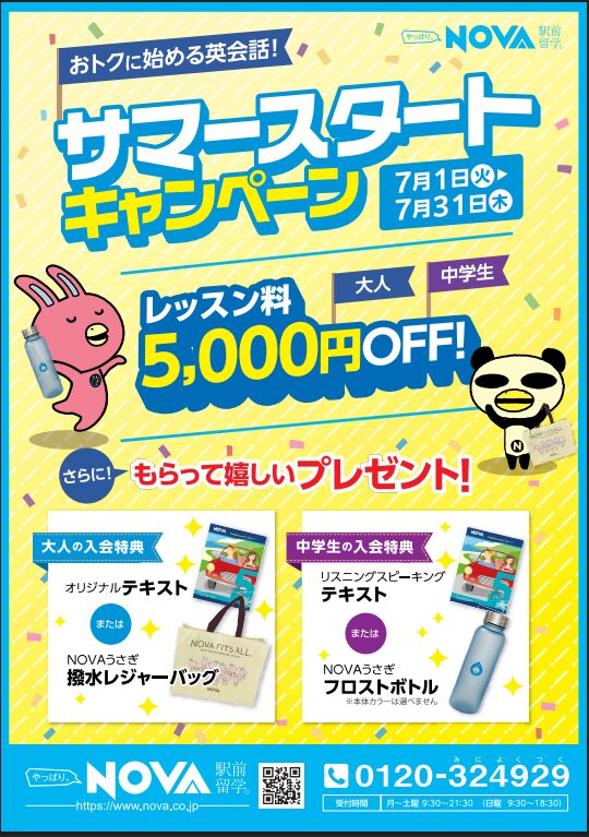NOVAでは、夏に向けて頑張る皆さまを応援するキャンペーンが開始しています!