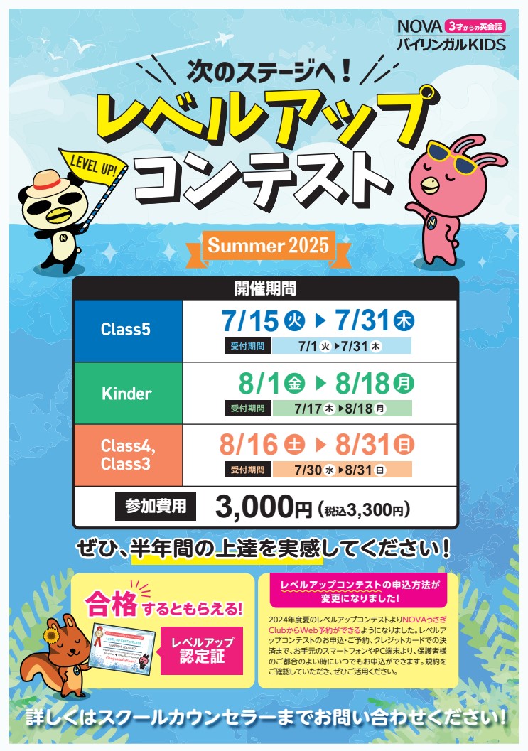 NOVAでは年2回のkidsの皆様のお力診断としてレベルアップコンテストが開催されます!!🔥🔥
