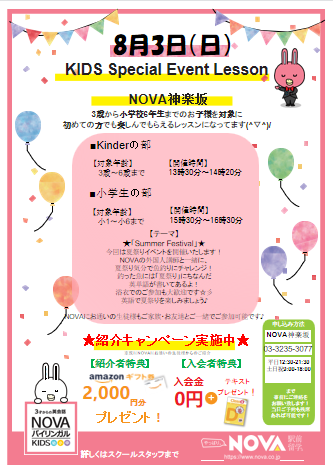 NOVA神楽坂校にてイベントレッスンの開催が決定!