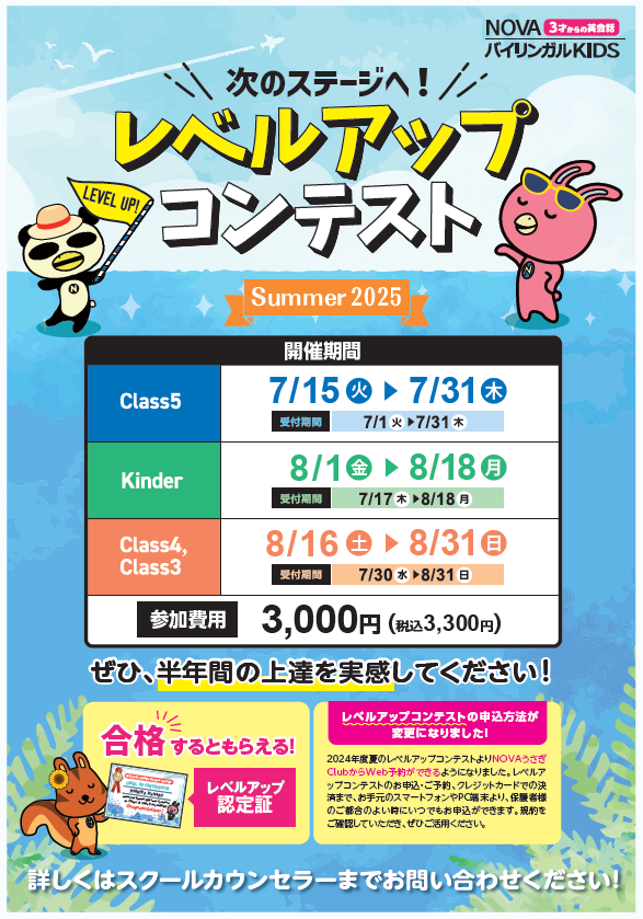 現在クラス5が絶賛開催中(7/15-7/31)、Kinderのお申し込みは8/1-から8/18、
