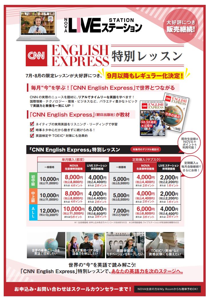 英会話スクール・英会話教室【NOVA京都駅前校】CNNEE×LIVEステーション9月以降継続決定🙋✨