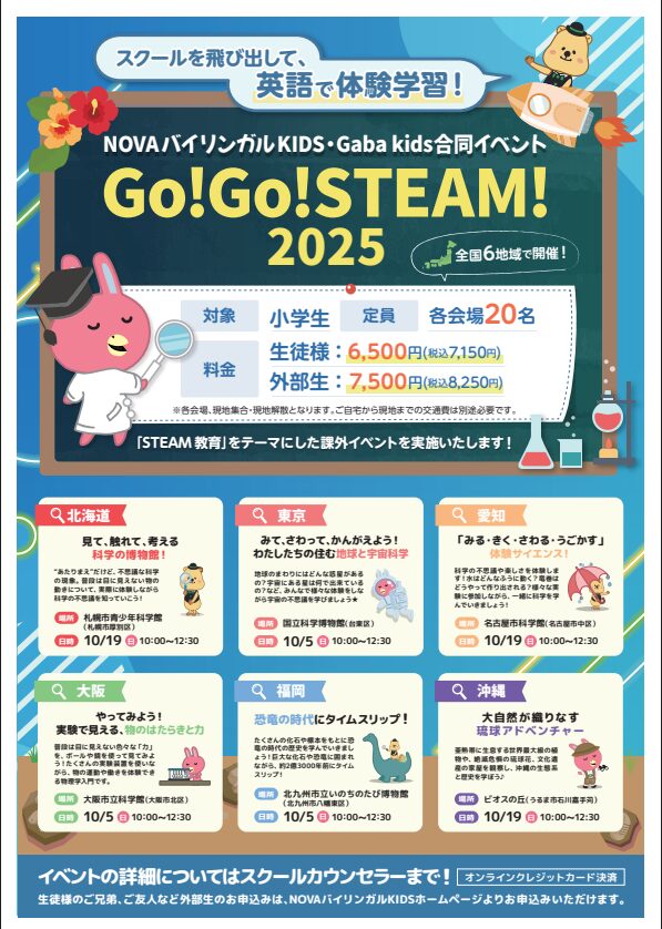 イベントにはNOVAスタッフ(日本人含む)数名が引率し、お子様をしっかりサポートします🐰✨