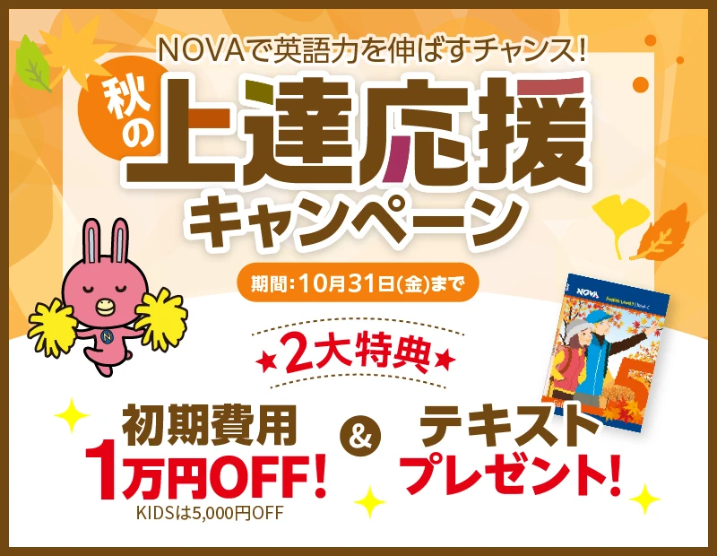英会話スクール・英会話教室10月入会キャンペーンスタート🐰🍂テキスト秋へ変わります🍃