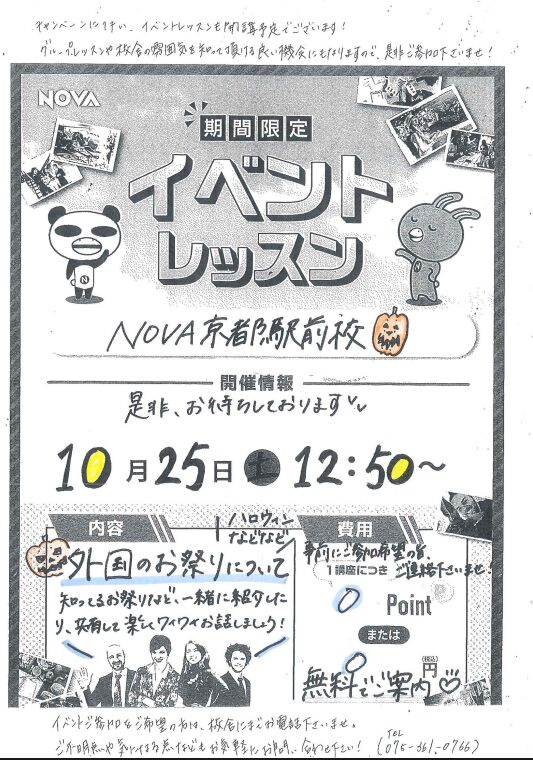 英会話スクール・英会話教室【NOVA京都駅前校】🎃イベントレッスン開催のお知らせ🕸
