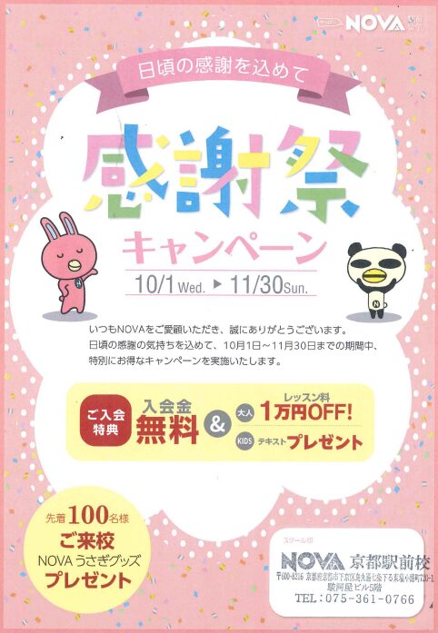 NOVA京都駅前校では、新規生徒様向けにイベントレッスンを実施いたします✨