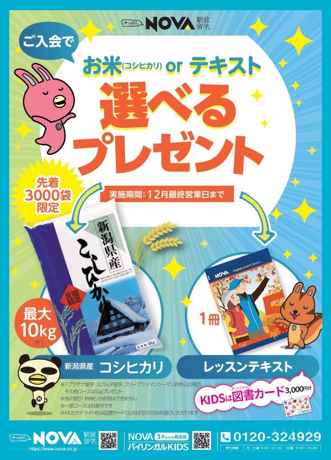 ぜひNOVA田無校(042-450-5151)までお問い合わせくださいね🌱