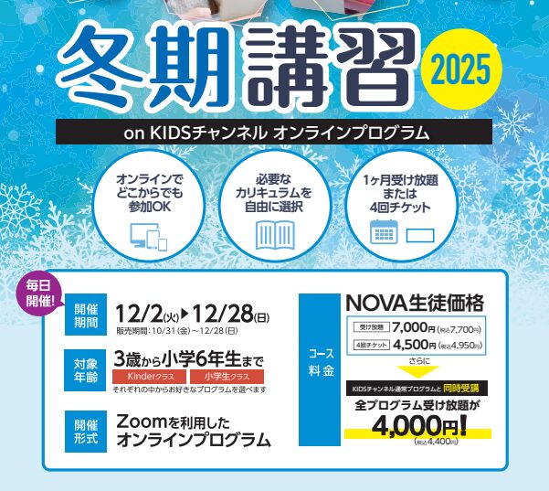 英会話スクール・英会話教室【英会話NOVA岐阜駅前校】KIDS冬期講習のご案内!