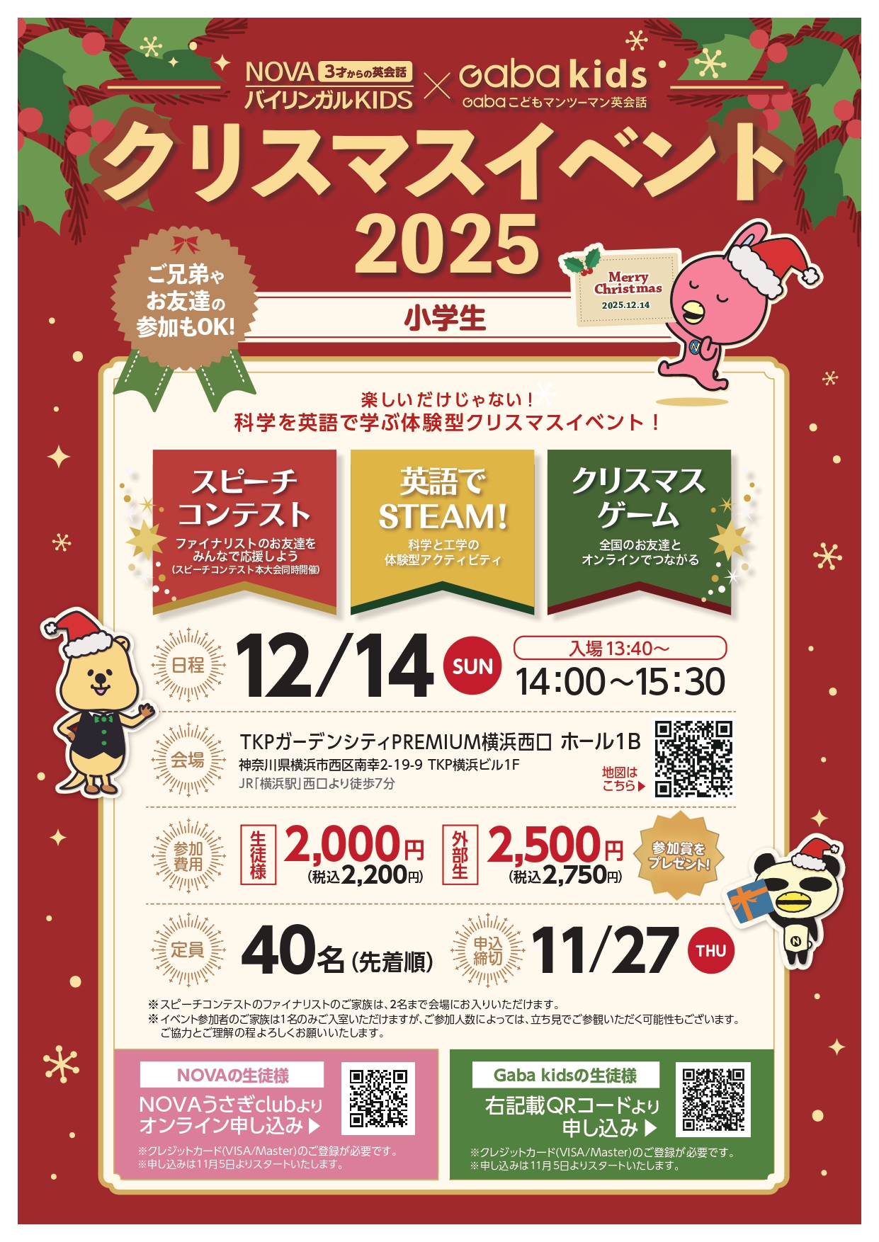 ≪楽しいだけじゃない!科学で英語を学ぶ体験型クリスマスイベント!≫