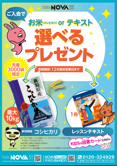新潟県産コシヒカリ🌾 または レッスンテキスト📖をプレゼント🎁