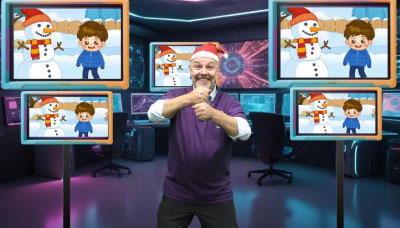 英語のクイズを解いて、サンタをパーティーに間に合わせよう!