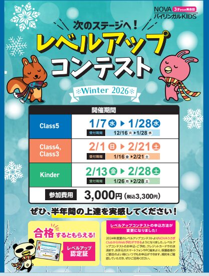 年明け2026年1月7日(水)~2月28日(土)は、半年に1度の🏅レベルアップコンテスト🏅を開催いたします!