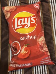 Potato chips flavored like tomato ketchup, surprisingly addictive.