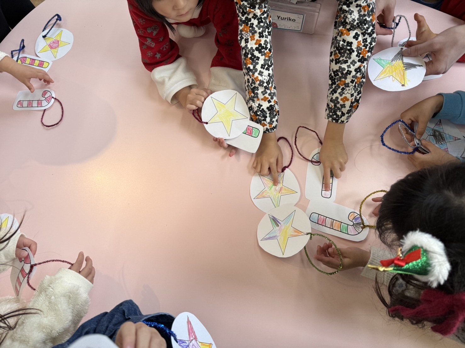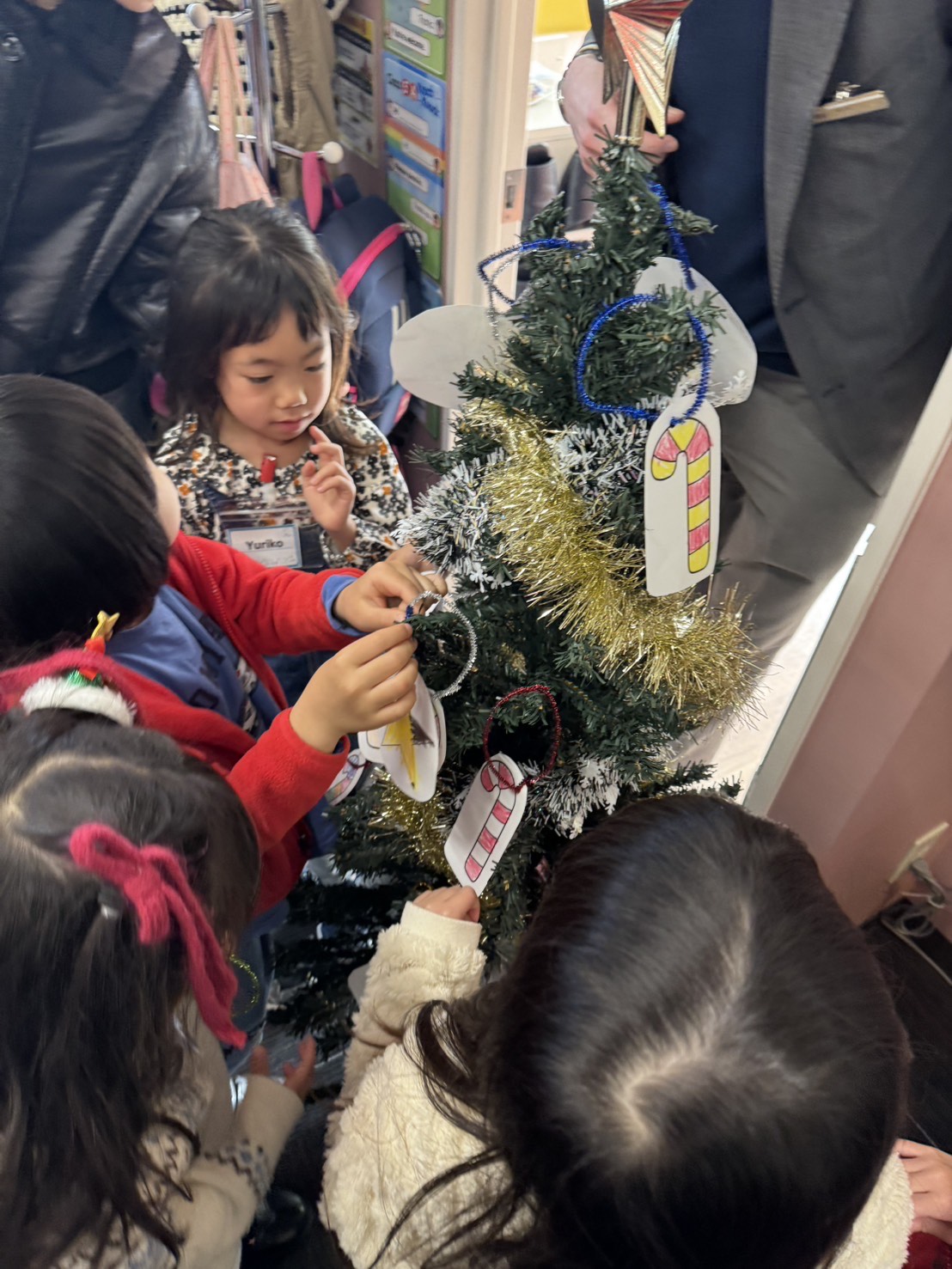 皆さんとても上手にクラフトを作っており、ツリーを可愛く飾りつけしてく