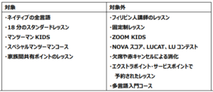 下記対象外のレッスンもございますので、下記をご参照ください。
