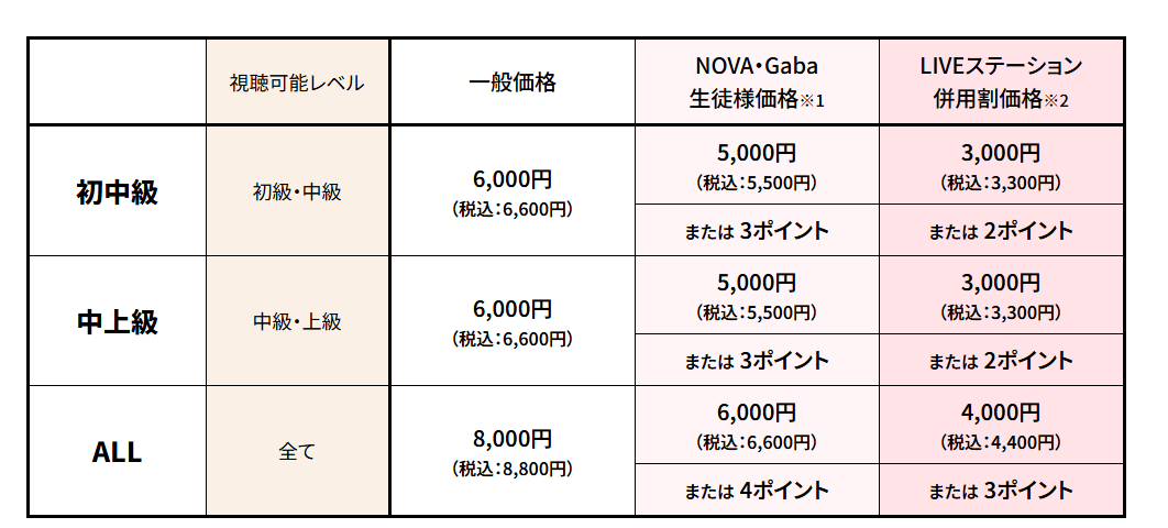 ◆販売コース:初中級・中上級・ALL(全レベル視聴可)