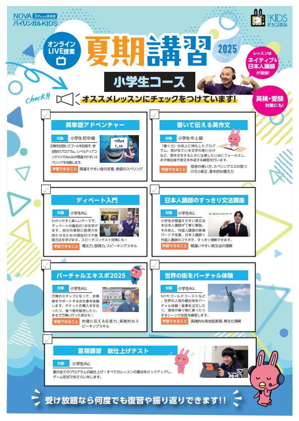 NOVAバイリンガルKIDSの生徒様が、英語で自分自身を表現する機会として、年に1 度開催されるビッグイベントです🎈。2020年の英語教育改革以降、「英語で考え、それを英語で表現すること」は、今のお子様たちに一番求められている力🎤!コンテスト参加を通じて「英語での思考力・豊かな表現力・チャレンジ精神」を養うことができる企画となっています。さらに、優勝すると「2026年度夏の海外留学プレゼント」または「レッスン特待生」に🎉