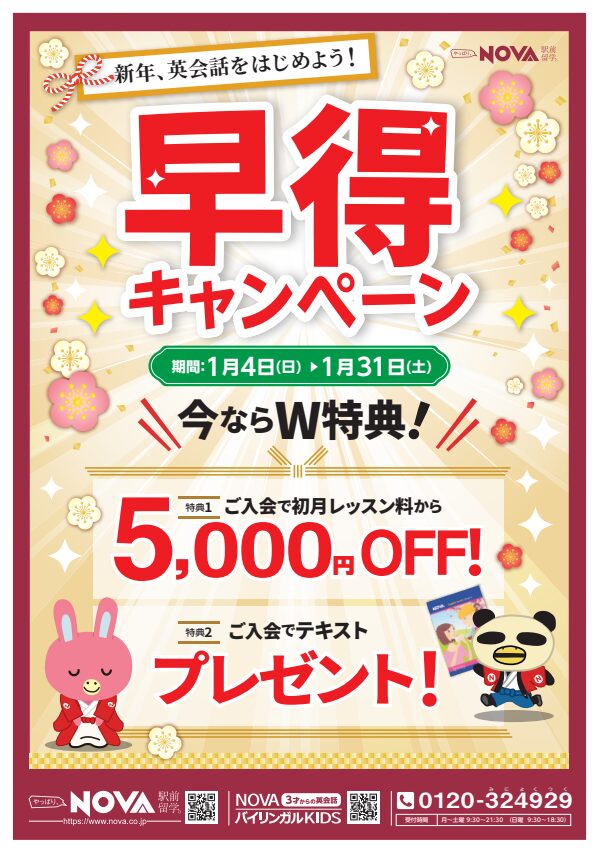 なお、NOVAは2026年より入会金がなくなりましたので、とてもお得にスタート頂けるようになりました!
