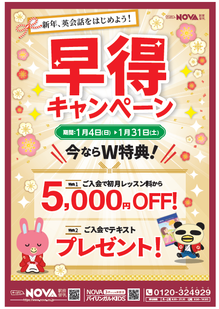 NOVAでは早得キャンペーンを行っております🤩🎉