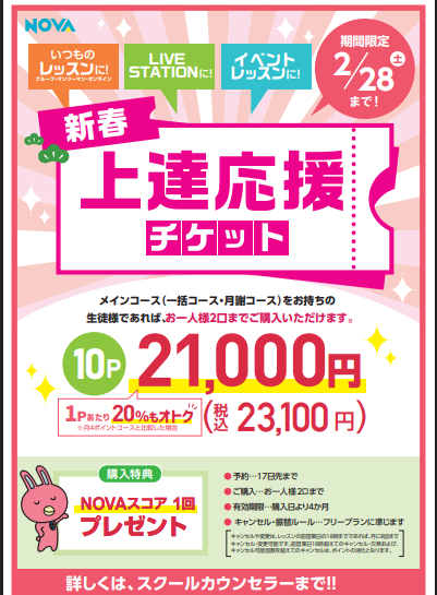 ぜひこのお得な機会にNOVAで英語を上達させていきましょう!