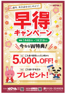 今回は新年の英会話!「早得!入会キャンペーン」のお知らせです❗❗❗