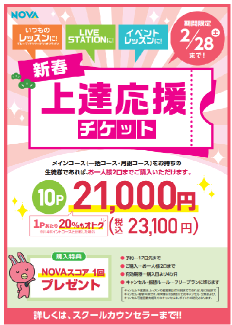 本年をNOVAをよろしくお願いいたします(*- -)(*_ _)ペコリ