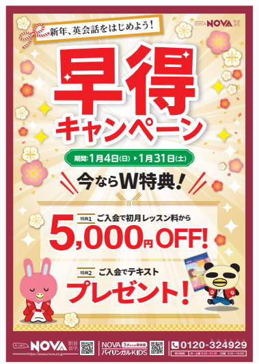 ご入会金無料に加えて、お得にスタートしていただけますので、英会話が気になっていたという方はぜひ新年新たにスタートしてみませんか♪