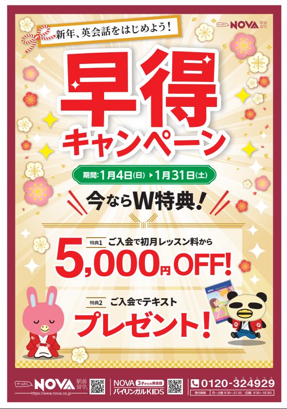 今、NOVAでは英会話をスタートするのにぴったりなキャンペーンを実施中です🤩