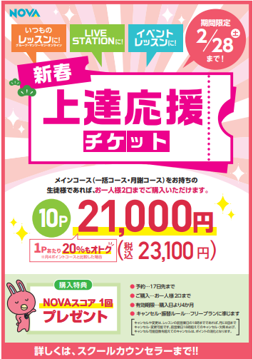 お得にポイントをご購入できる新春上達応援クーポンのご案内です🌼