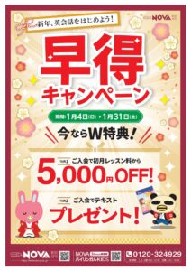 英会話スクール・英会話教室2026年★早得キャンペーン★のご案内【英会話スクールNOVA西梅田校】
