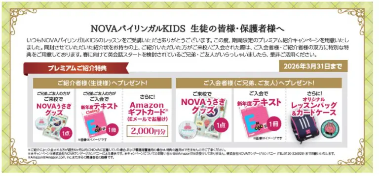 ご紹介者様:(ご兄弟、ご友人の方のご来校で) NOVAうさぎグッズプレゼント🐰🎁