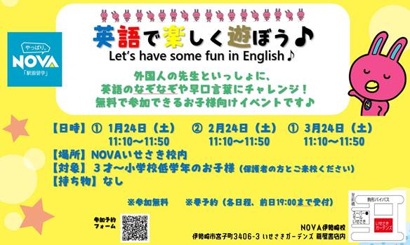 NOVAのレッスンでも元気いっぱい楽しく英語に取り組んでいます!