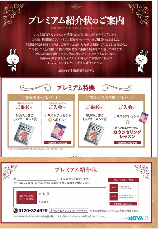 そして1月より、NOVAでは入会金の制度が廃止されました!