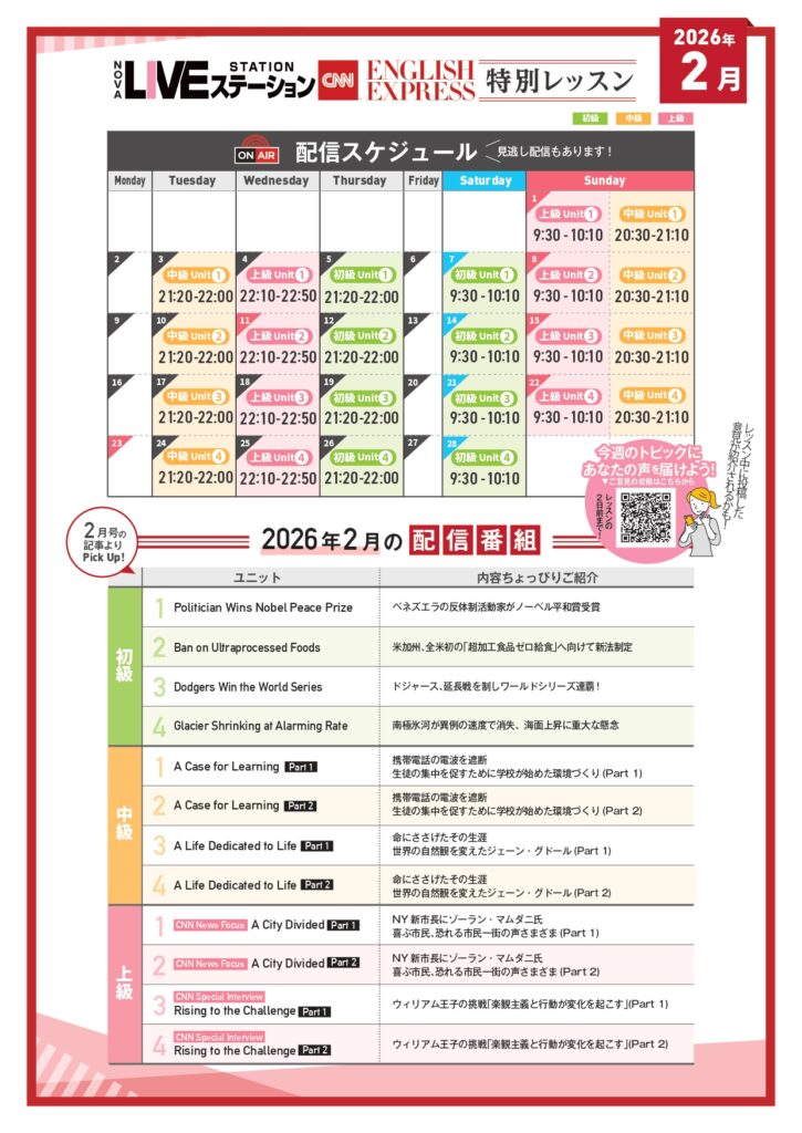 英会話スクール・英会話教室【NOVA会津若松校】2/1(日)よりCNNライブステーション2月号配信スタート🐰❕