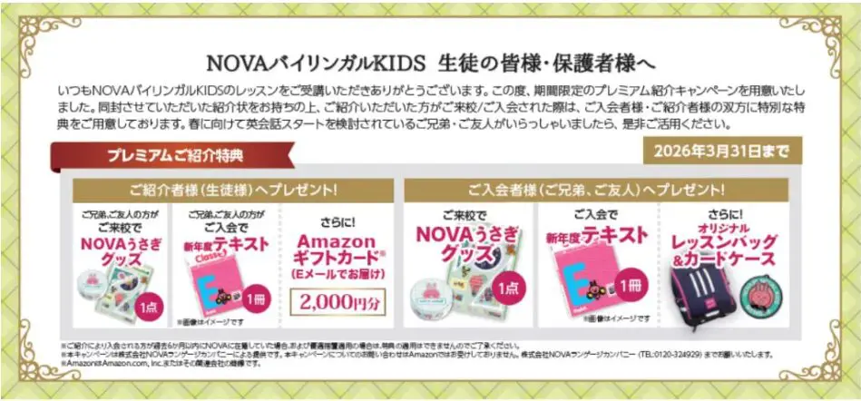 NOVAでは通年で、生徒様からのご紹介で英会話スタートいただくと