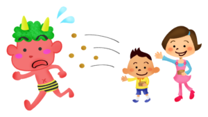 豆を投げるお祭りで分かりやすいい説明になります👹