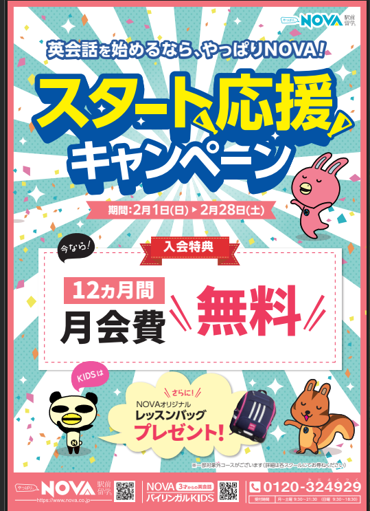 2026年度はより多くのお客様にNOVAを知って頂けるよう、とてもお得なキャンペーンをご用意しております。