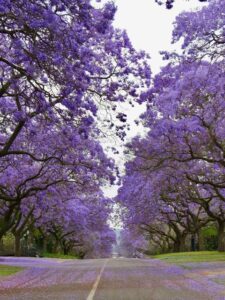 私は南アフリカの美しい都市、プレトリア出身です。春になると通り一面に紫色のジャカランダが咲き乱れ、街全体が色とりどりの海に変わります。そのため、人々はプレトリアを「ジャカランダの街」と呼んでいます。