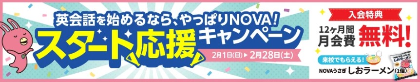 ご入会者様→ご来校でNOVAうさぎしおラーメンプレゼント!