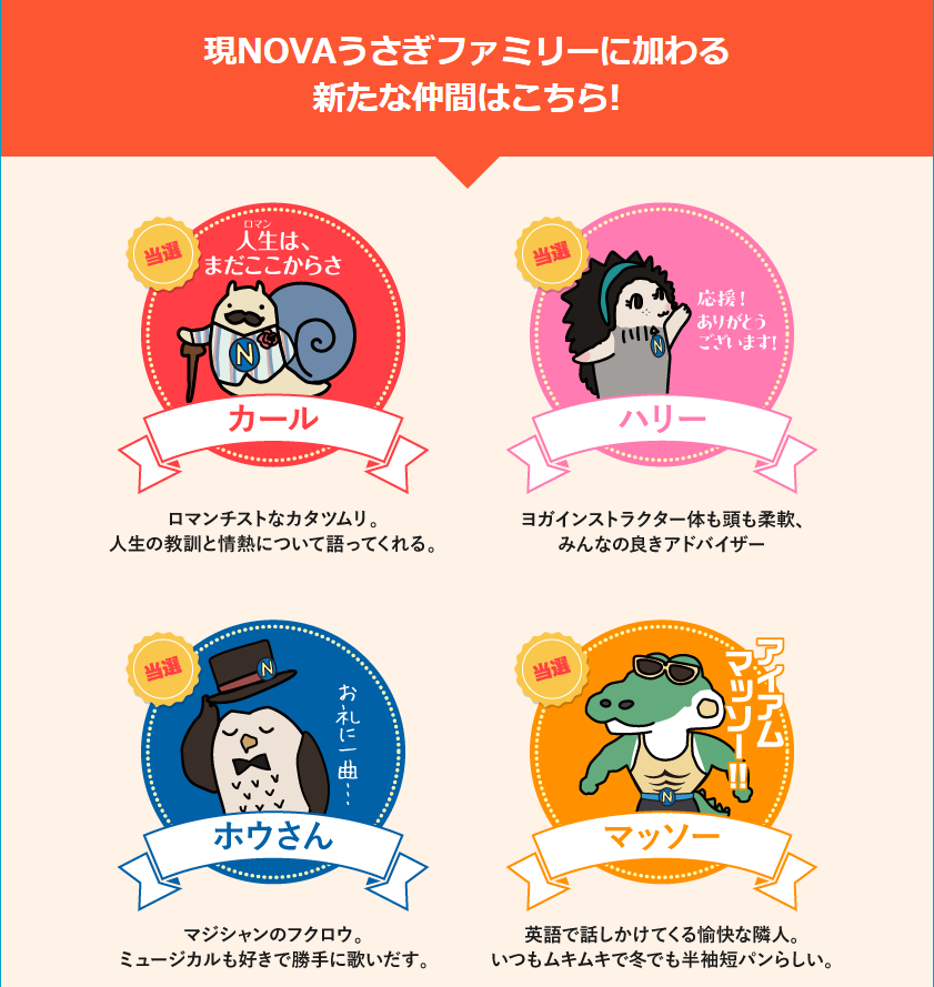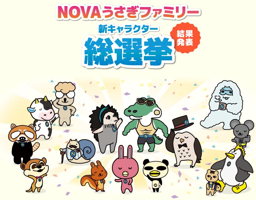 お客様とともに選出する参加型企画「NOVA うさぎファミリー総選挙」と題して