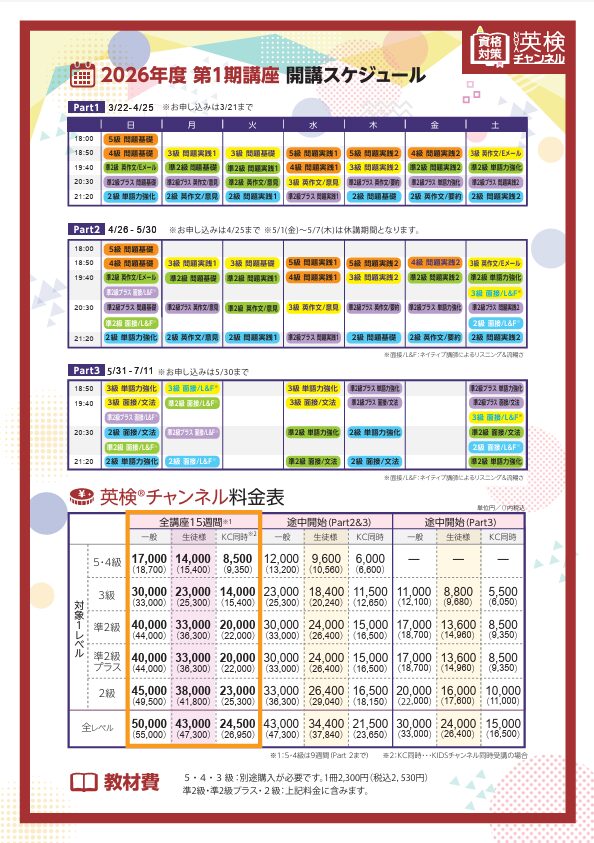 英検®の試験日程をターゲットに、15週間で合格を目指します!!