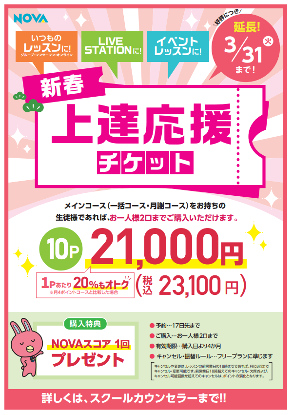 本日は「新春上達応援10ポイントクーポン」販売期間延長のお知らせです。